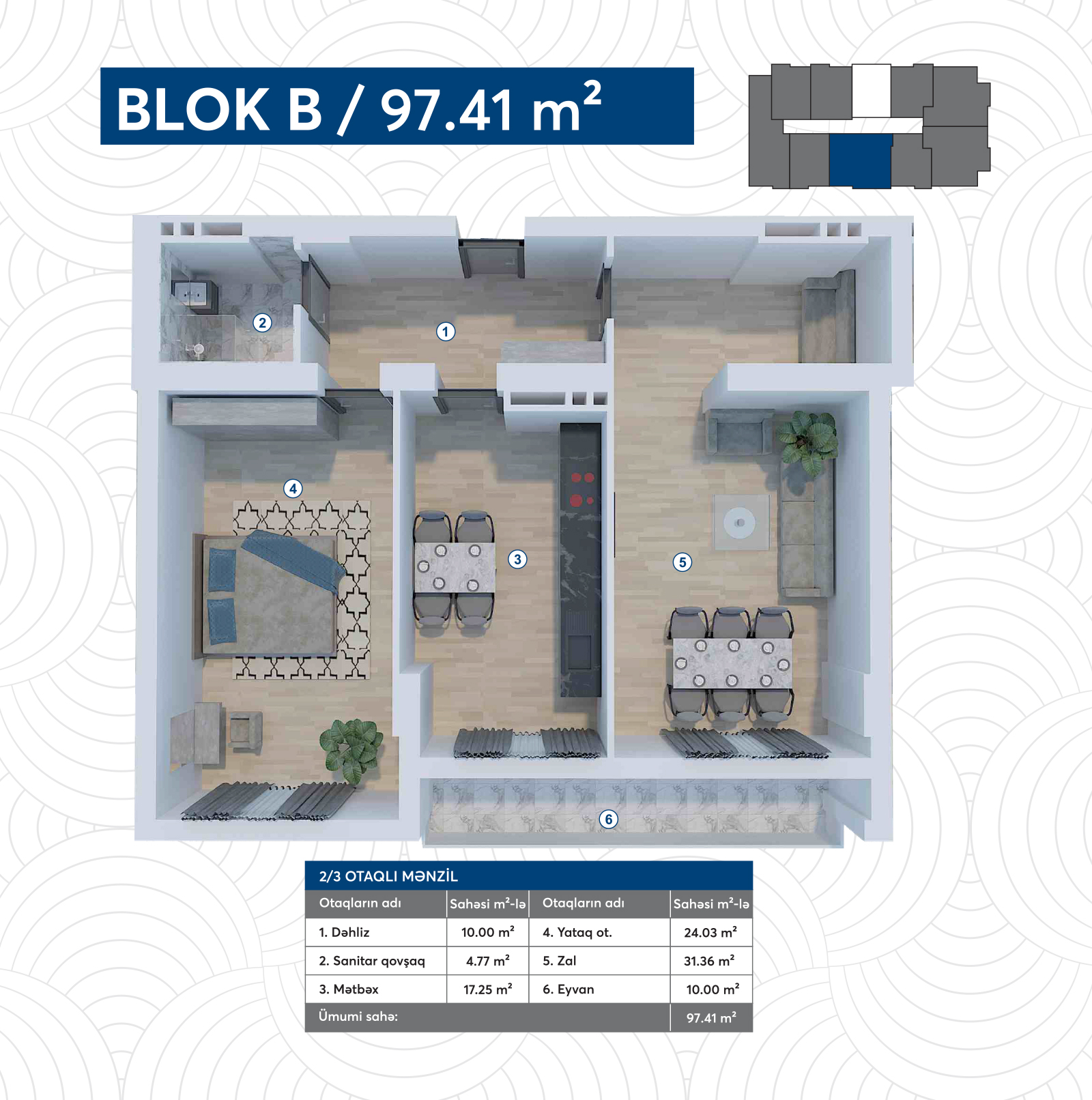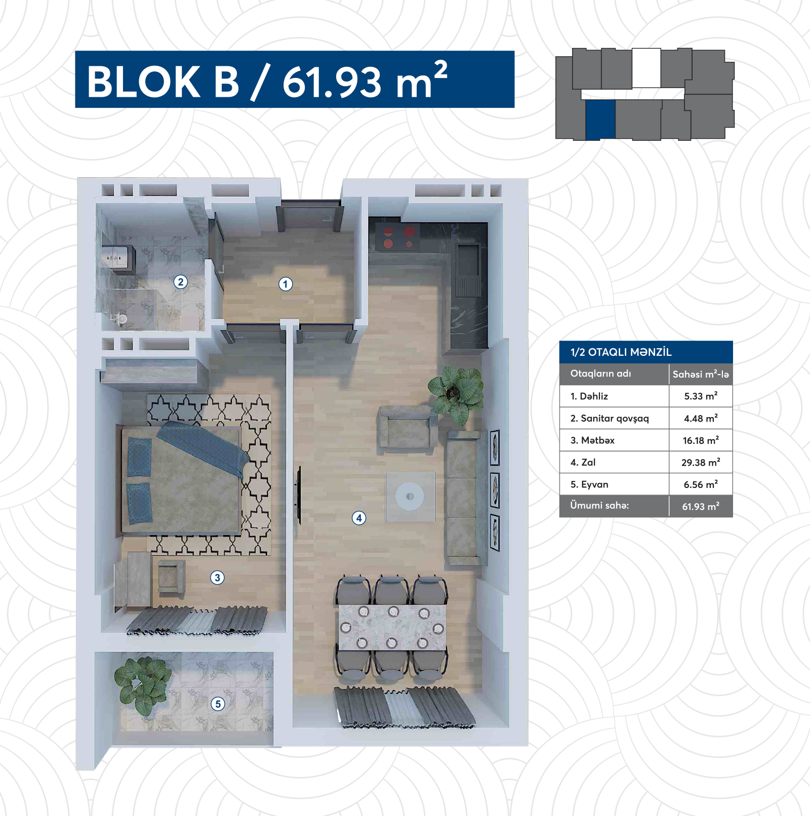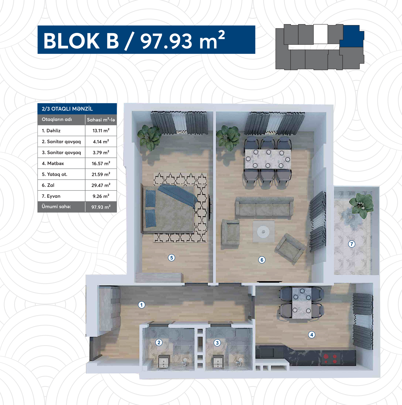 Mənzillərimizin bölgüləri , orada yaşayacaq sakinlərin komfortunun tam təmin edilməsi üçün,xüsusi diqqət ilə tərtib edilib.