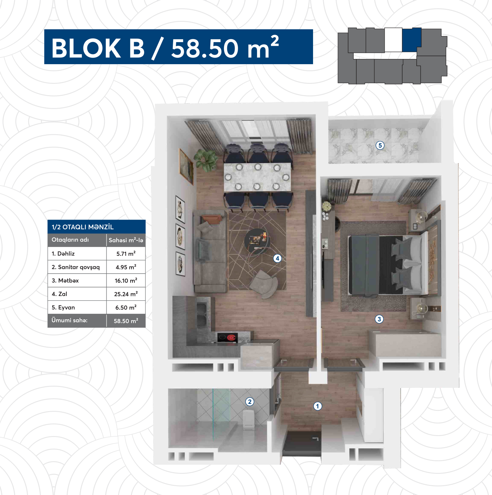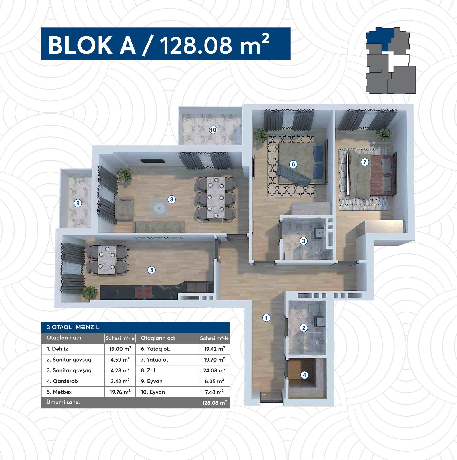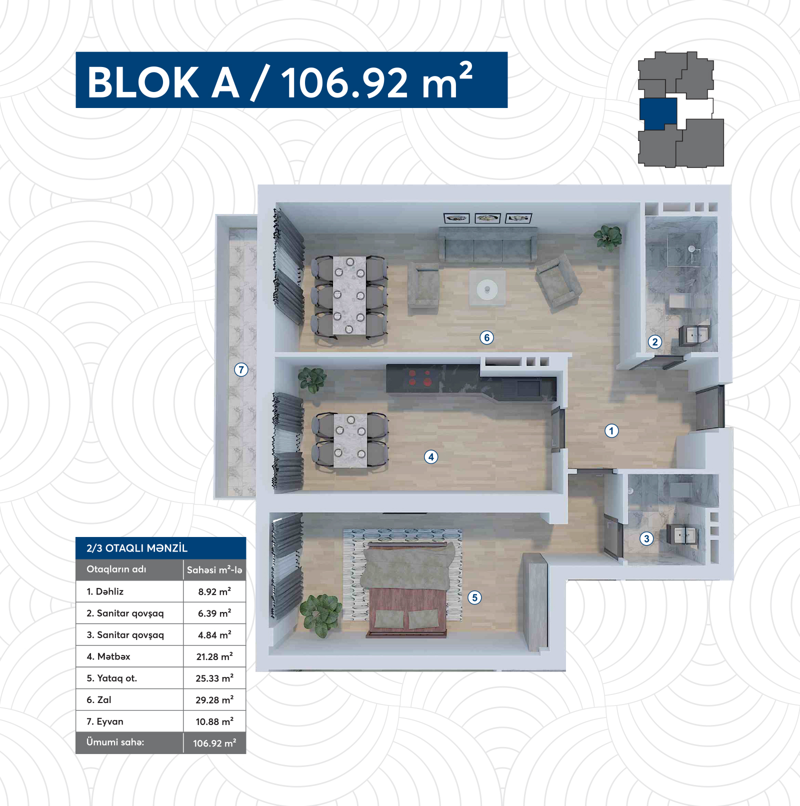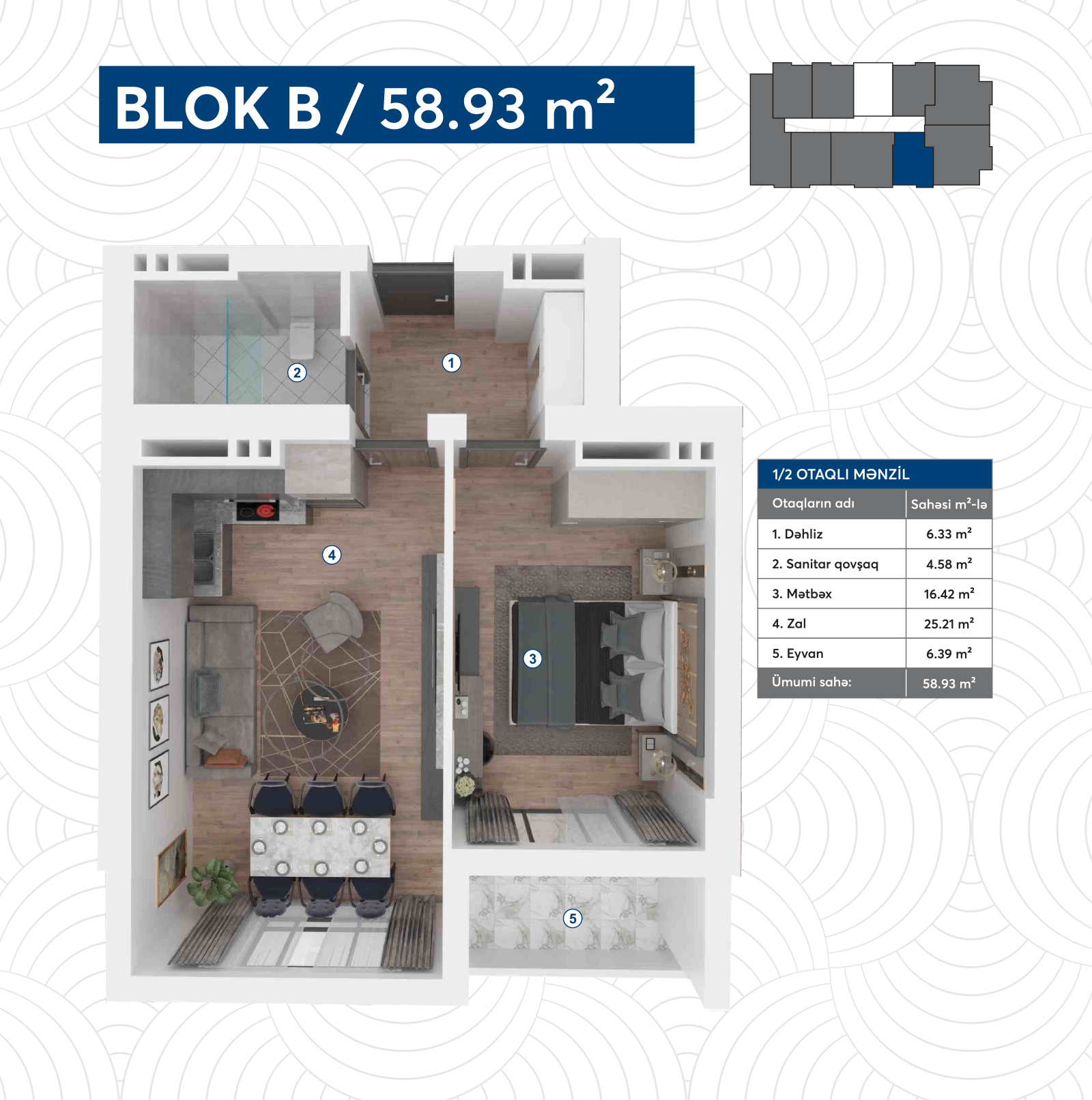 Mənzillərimizin bölgüləri , orada yaşayacaq sakinlərin komfortunun tam təmin edilməsi üçün,xüsusi diqqət ilə tərtib edilib.