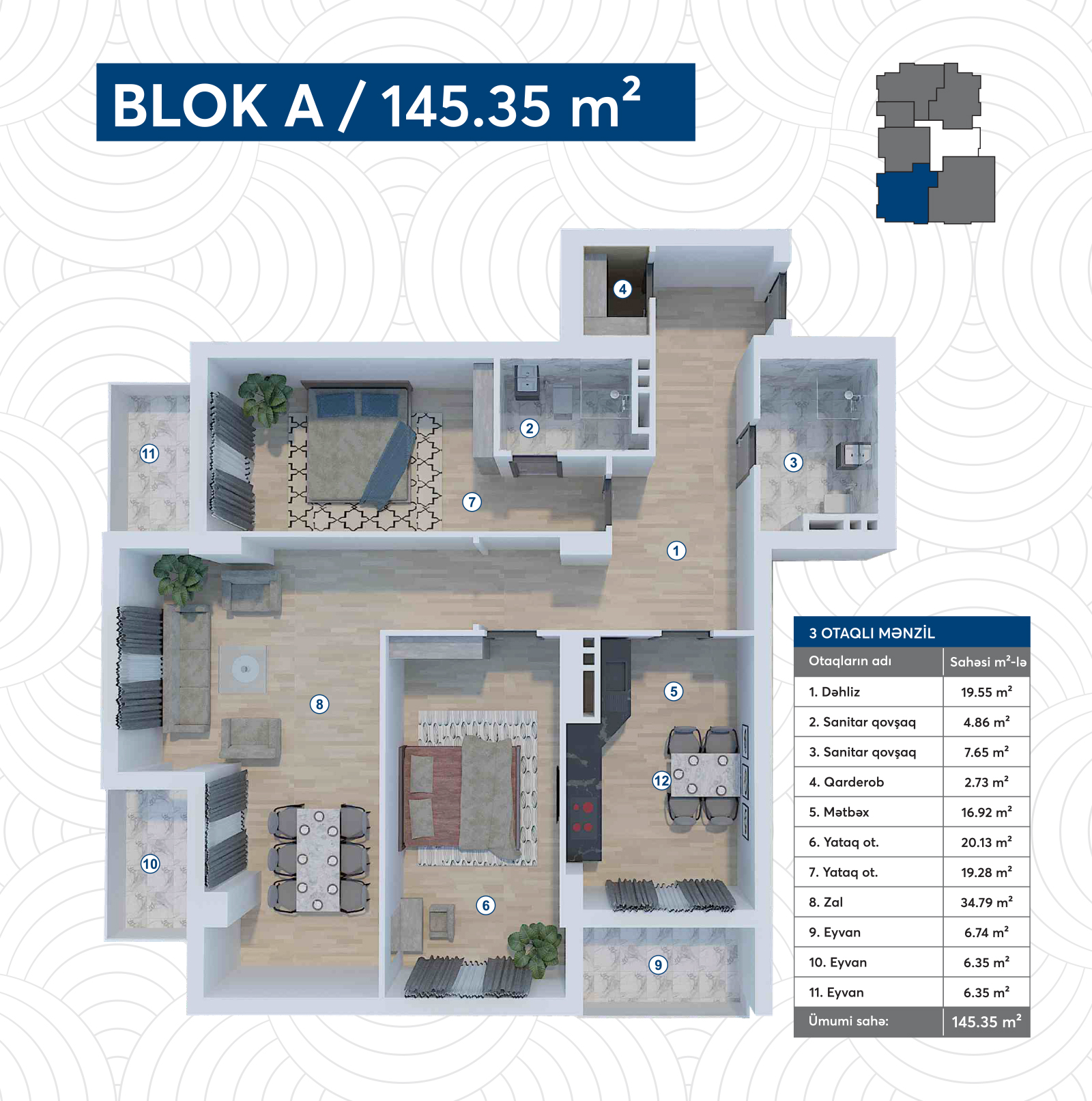 Mənzillərdə mebelin yerləşməsi daxil,hər bir dizayna uyğun işləri görmək çox rahat olacaq.